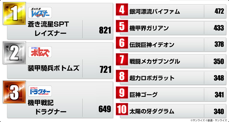 お待たせいたしました、サンライズ80'ロボ商品化希望投票 結果発表です!!